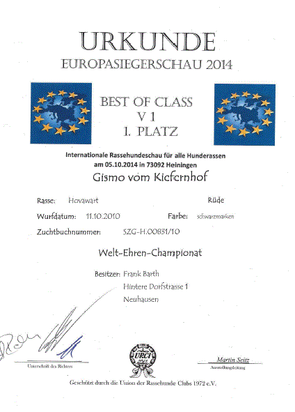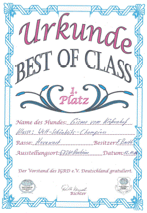 Platz TITEL BEST OF SHOW