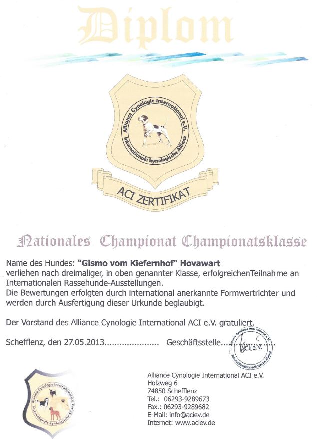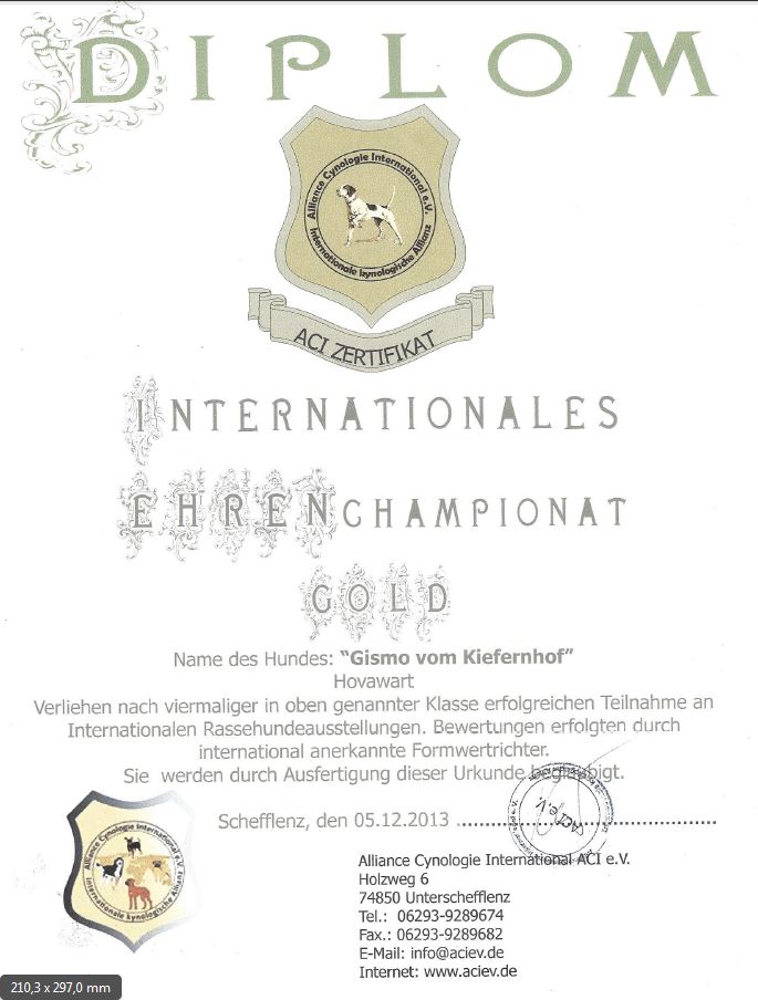 Int.-Ausst.-Championat in Gold