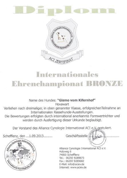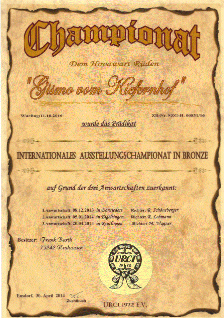 Int.-Ausst.-Championat in Bronze |